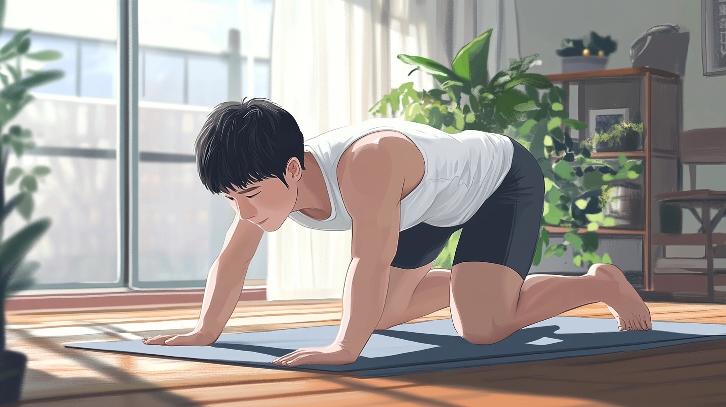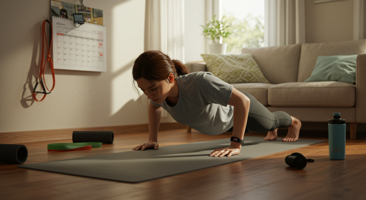 팔굽혀펴기가 처음이라면 무릎을 바닥에 대고 시작하는 ‘무릎 푸시업(Knee Push-up)’을 추천합니다. 기본 자세에서 무릎을 땅에 대고 상체를 천천히 내려갔다 올리면 됩니다. 하루 10개씩 시작해 점차 늘려가 보세요.