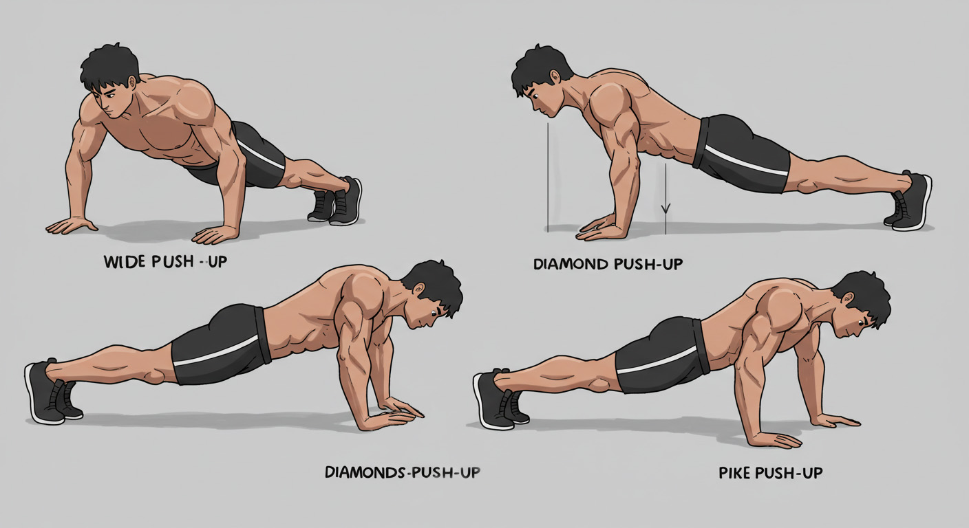 팔굽혀펴기는 변형을 통해 더 재미있고 효과적으로 할 수 있습니다. 몇 가지 인기 있는 푸시업 종류를 소개합니다: