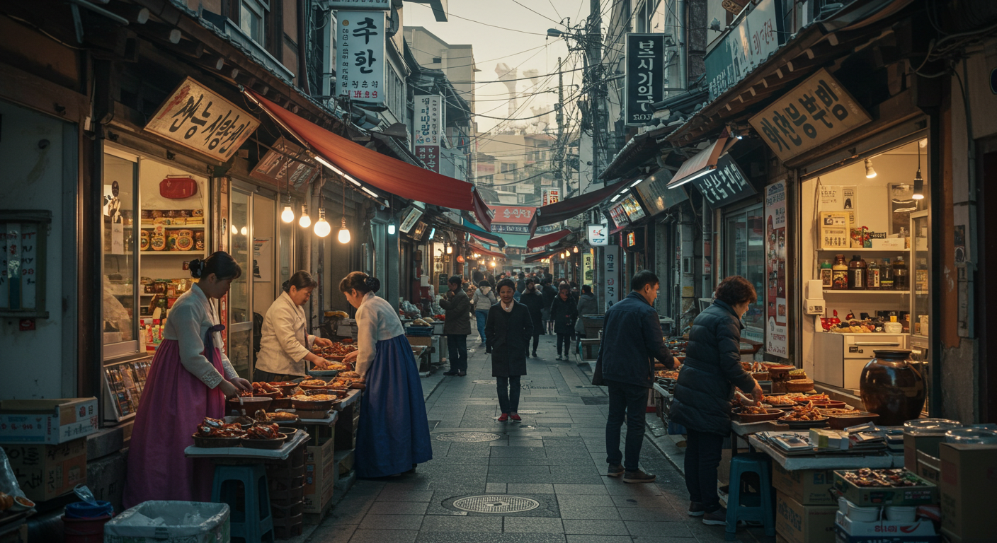 전통 시장의 변화(Changes in Traditional Markets)는 한국의 상업 문화 변천을 보여줍니다. 과거 남대문시장, 광장시장 같은 전통 시장은 지역 주민들의 삶의 중심이었지만, 대형 마트와 온라인 쇼핑의 확산으로 쇠퇴하고 있습니다. 시장에서 들리던 흥정 소리와 상인들의 정은 이제 희미해졌습니다.