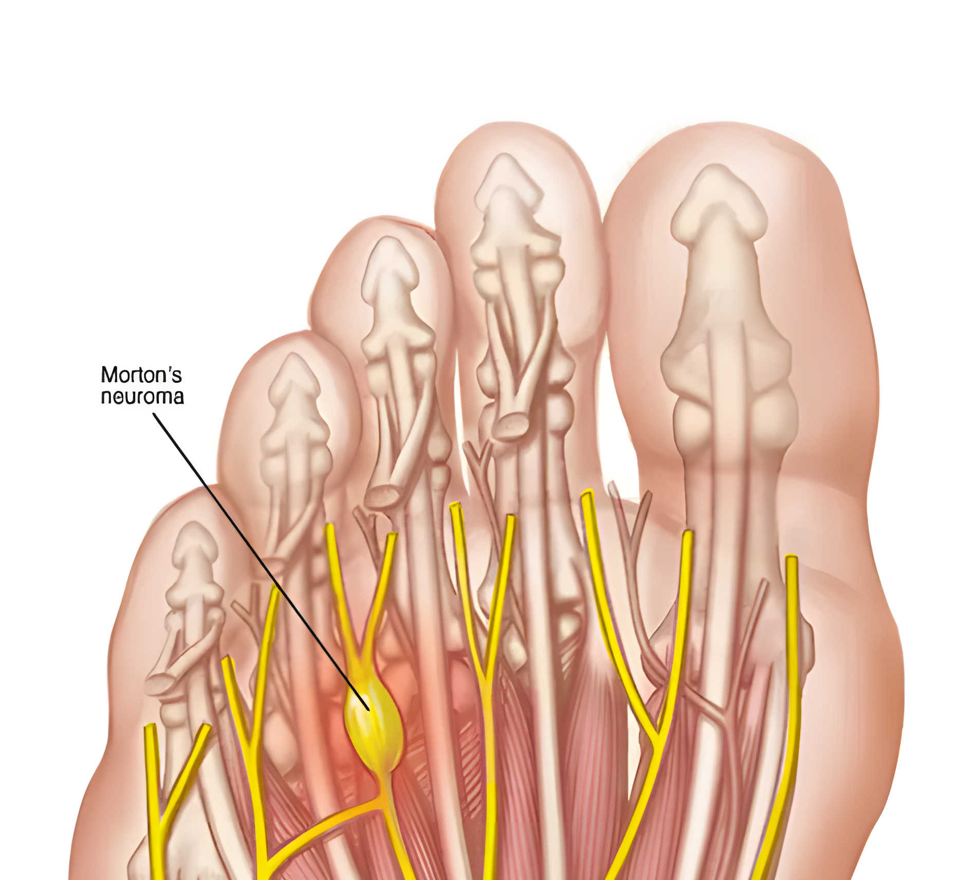 주로 3번과 4번 발가락 사이에서 발생하며, 발바닥 앞쪽에 타는 듯한 통증이나 저림을 유발합니다.
