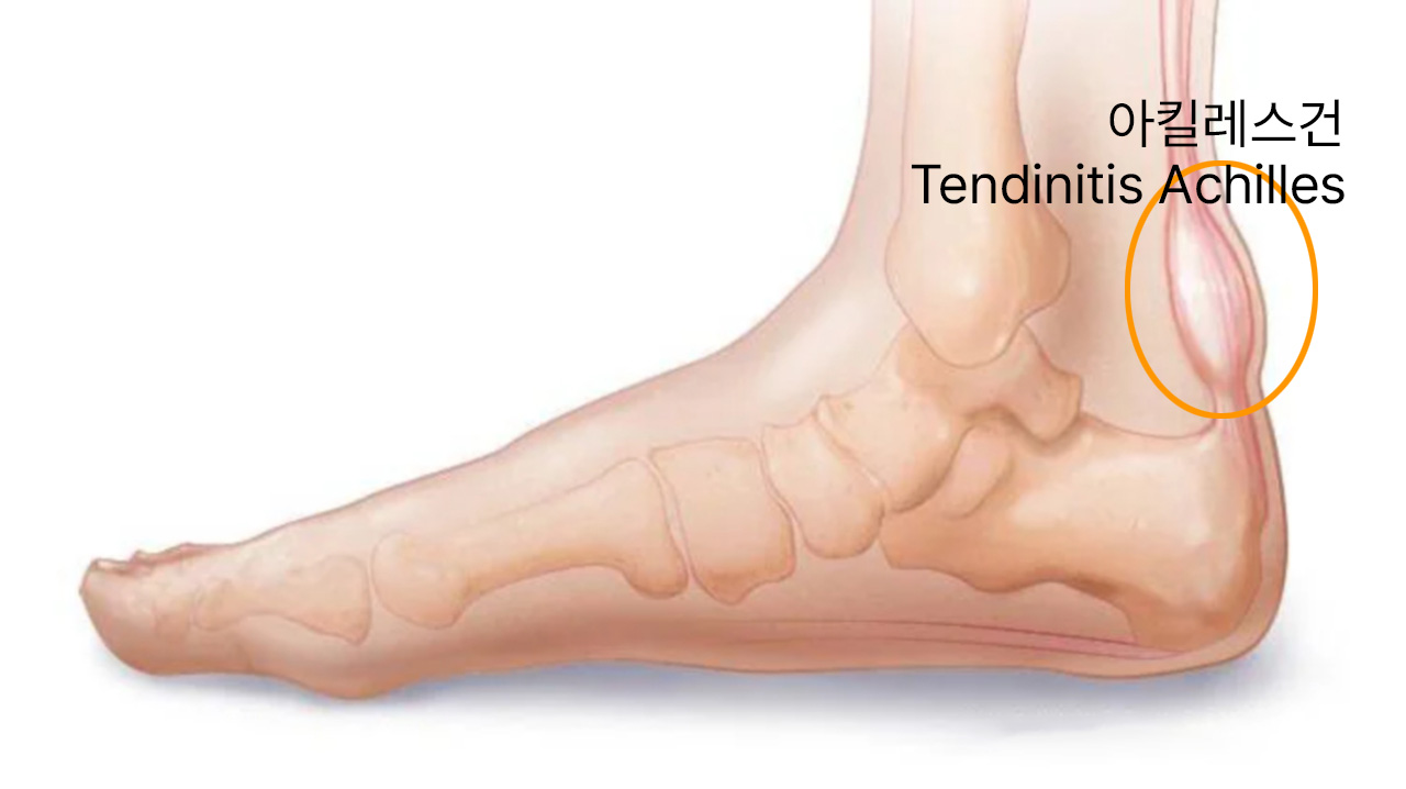 아킬레스건염(Tendinitis Achilles)은 발뒤꿈치 뼈와 종아리 근육을 연결하는 아킬레스건에 염증이 생기는 질환입니다.