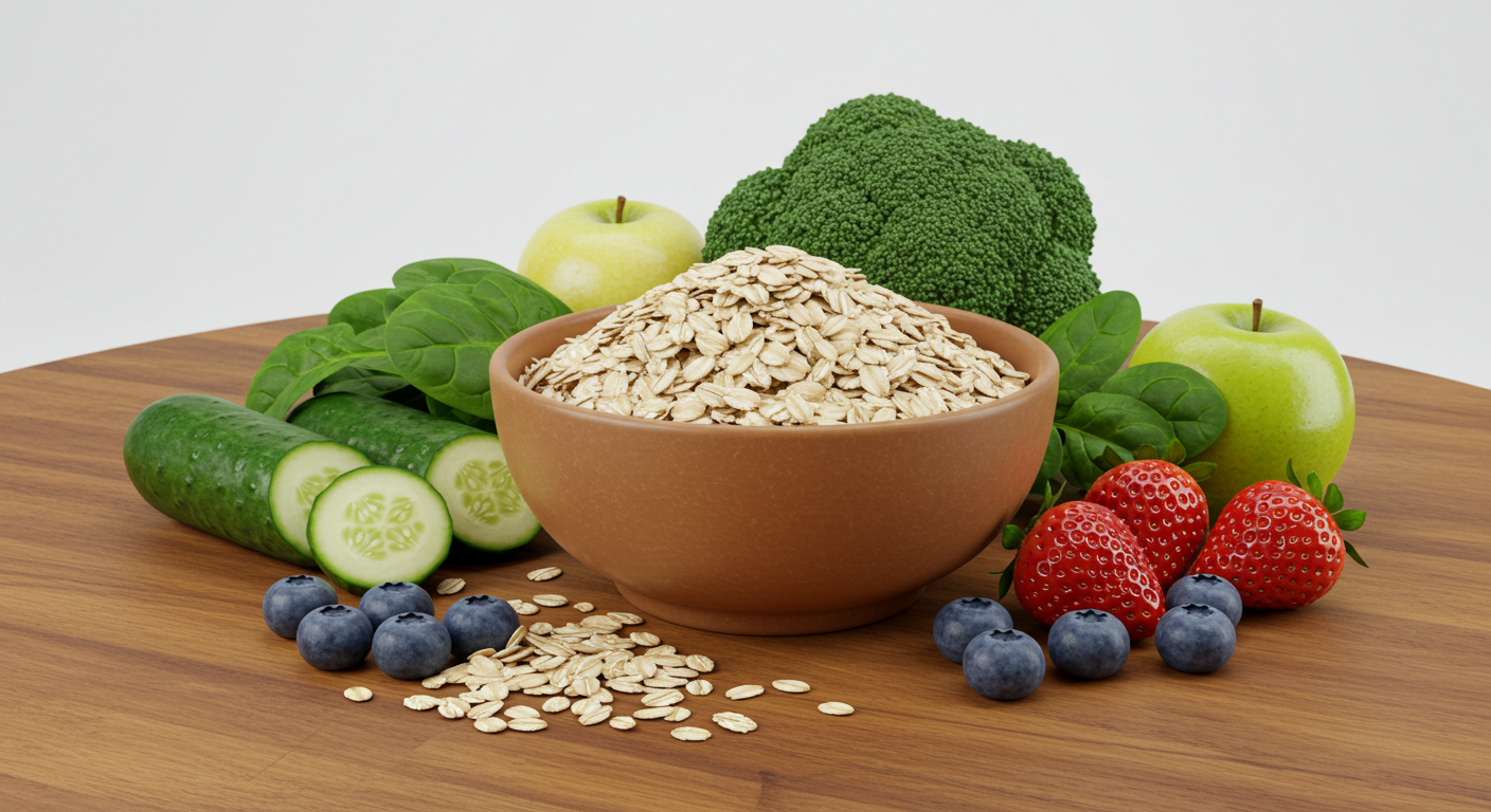 귀리, 귀리 겨, 채소 등이 이에 해당하며, 배고프지 않은 다이어트에 필수적입니다.
