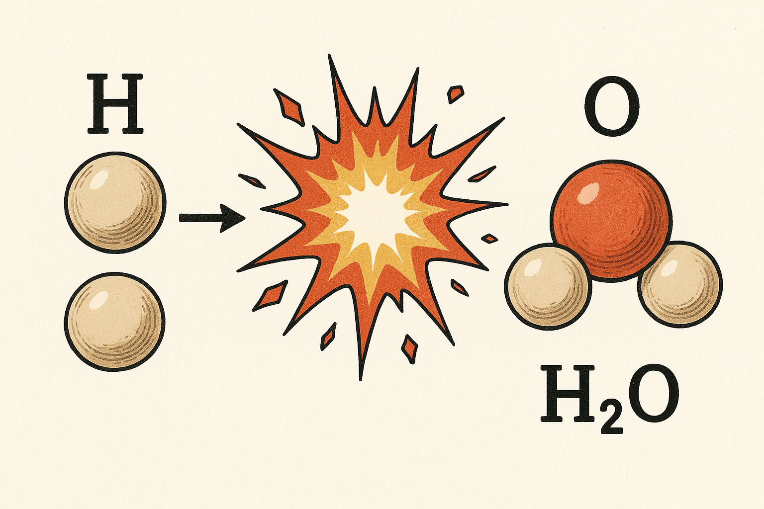 1. 엉뚱하지만 수소와 산소로 물 생성? 수소 2개와 산소 1개가 만나면 물(H₂O)이 생성됩니다. 하지만 질량대비 수소 1톤과 산소 8톤이 결합할 때는 폭발적이고 위험한 반응이 일어나므로 실제로 산불 진화에 활용하기 어렵습니다.