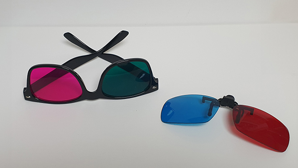 전통적으로, 이러한 안경은 한쪽 렌즈에 빨간색 필터를, 다른 쪽에는 청록색(시안) 필터를 사용합니다.
