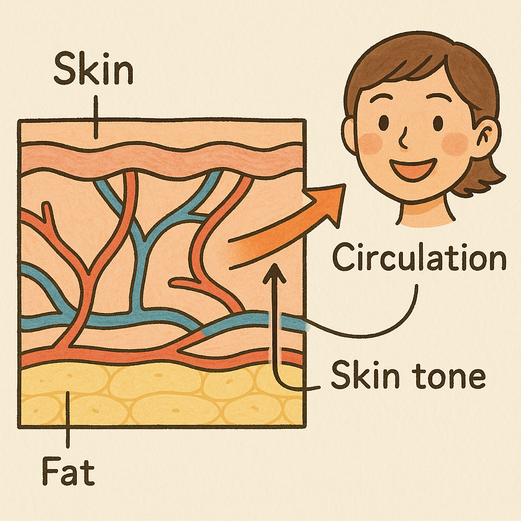 혈색은 피부 아래 혈관을 통해 흐르는 혈액의 상태가 피부 표면에 드러난 결과입니다. 혈액 속 산소와 영양소가 충분히 공급되면 피부가 붉고 생기 있게 보입니다.