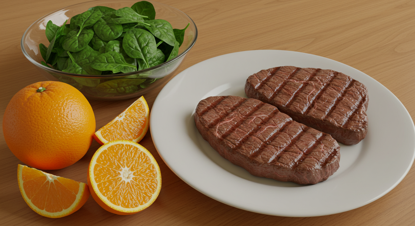 철분(쇠고기, 시금치), 비타민 C(오렌지), 단백질이 풍부한 음식을 섭취하면 혈액 건강이 좋아집니다.