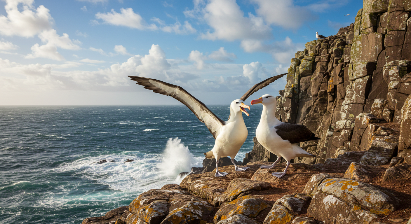 알바트로스(Albatrosses)는 바다 위의 단혼 대표입니다.