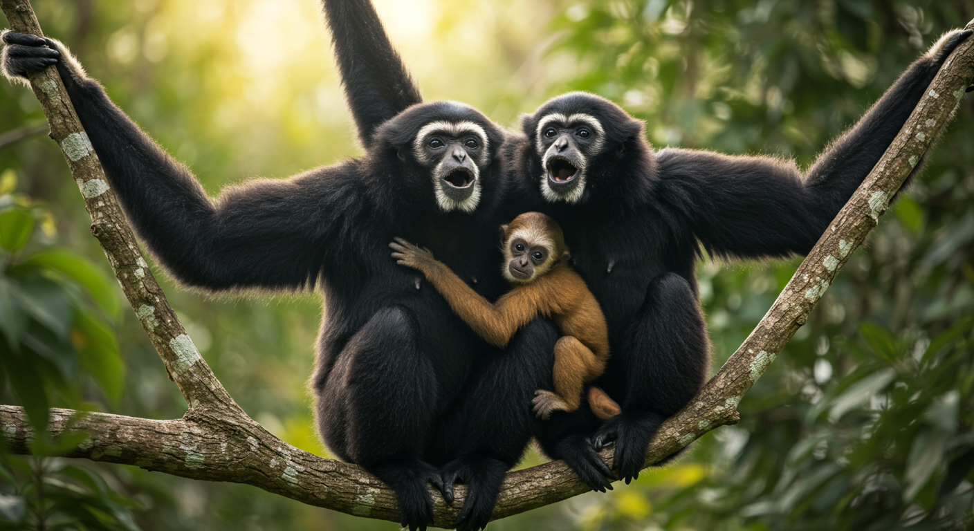긴팔원숭이(Gibbons)는 영장류 중 드문 단혼 동물입니다.