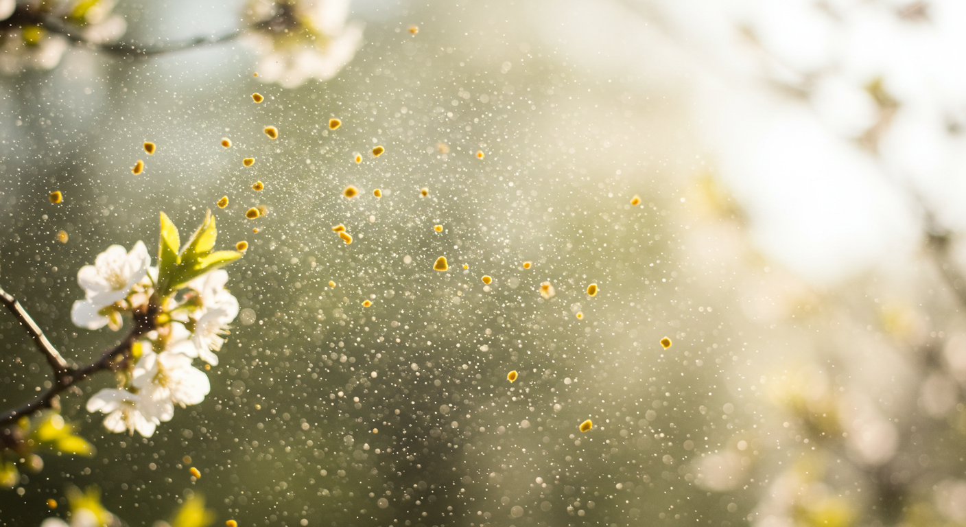 봄철에는 나무와 꽃에서 방출되는 꽃가루가 공기 중에 떠다닙니다. 특히 소나무, 자작나무, 참나무의 꽃가루가 주요 원인입니다.