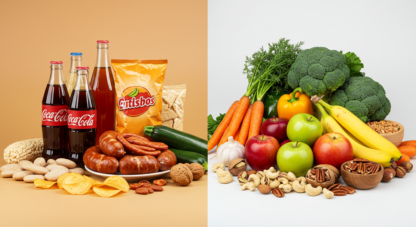 초가공 식품(Ultra-Processed Food)은 소시지, 탄산음료, 냉동 피자 등 첨가제와 보존제가 많은 식품을 의미합니다. 이들은 포화지방, 설탕, 소금이 많고 식이섬유는 적습니다.