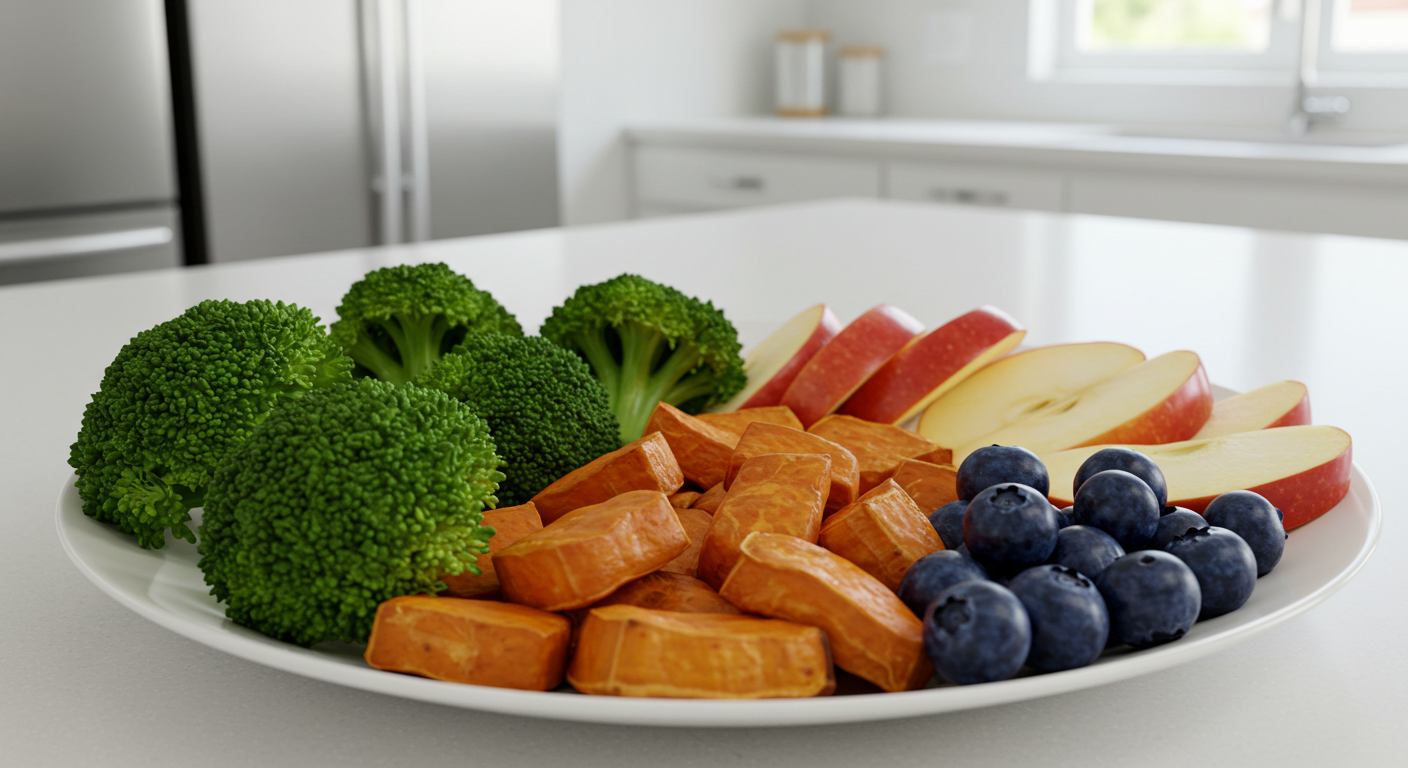 A1. 식이섬유가 풍부한 채소(브로콜리, 고구마), 과일(사과, 블루베리), 통곡물(현미, 귀리)을 우선하세요. 요거트와 같은 프로바이오틱스 식품도 장 건강에 도움을 줍니다.
