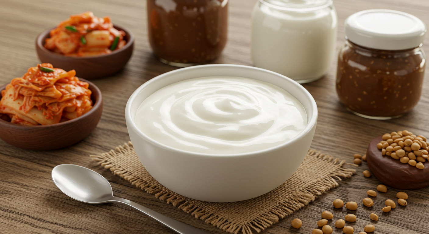 프로바이오틱스는 요거트 외에도 김치, 된장과 같은 발효식품에서 섭취할 수 있습니다.