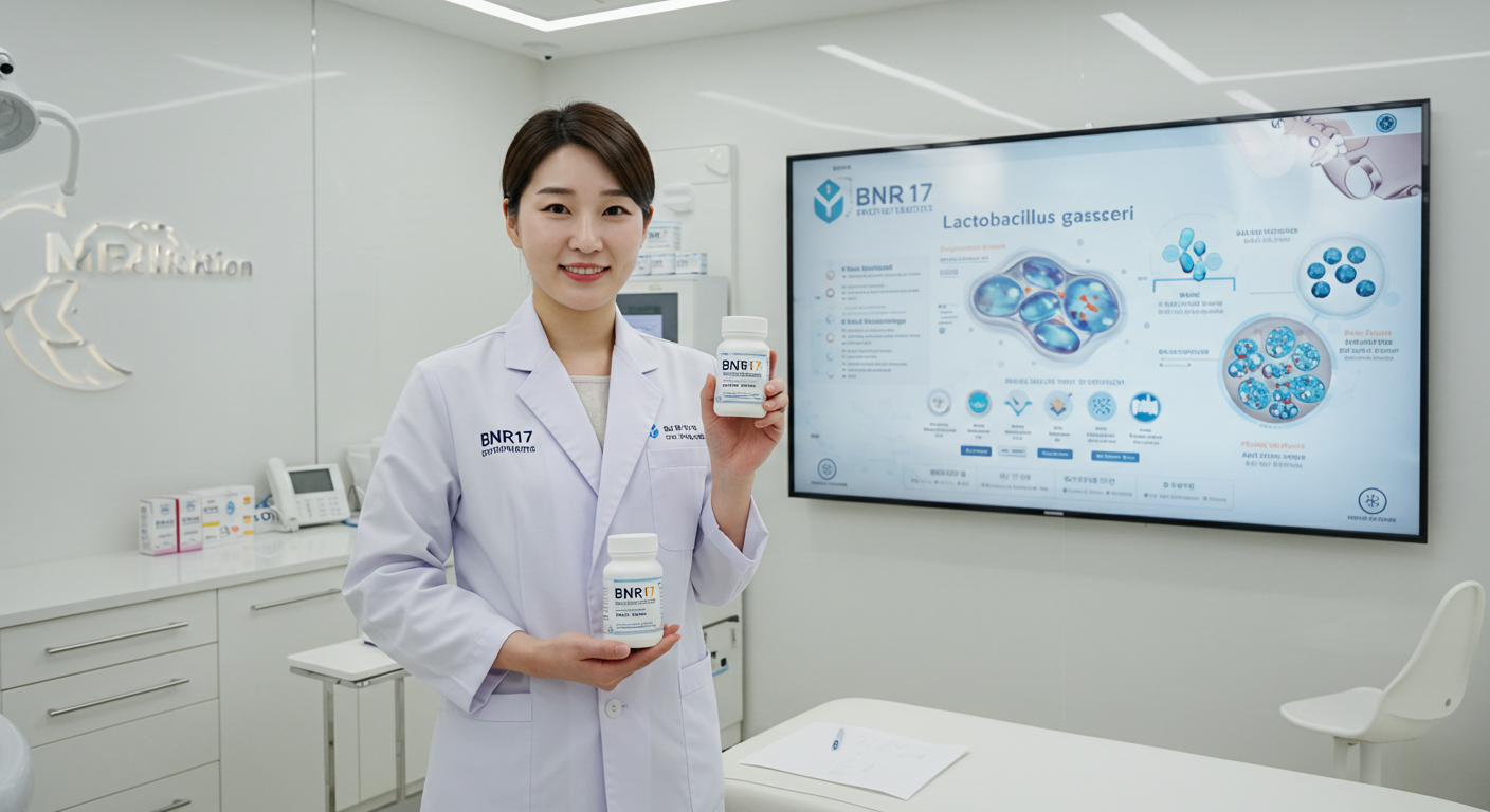 또한, 인체 적용 시험에서는 12주간 BNR17 유산균을 섭취한 비만 성인의 허리둘레(95.4cm → 90.4cm)와 복부 내장 지방이 유의미하게 감소한 결과가 보고되었습니다.