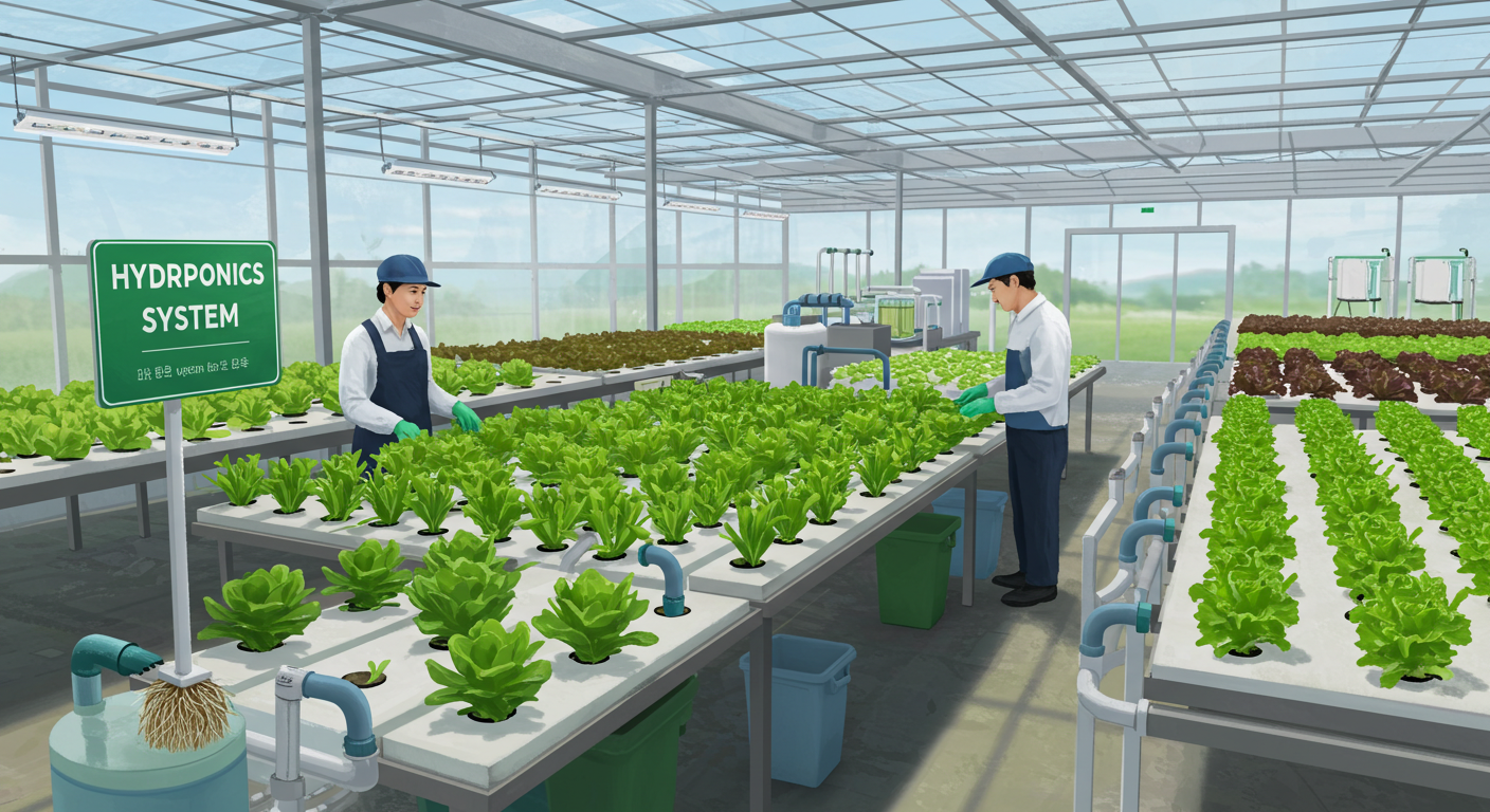 수경재배 시스템은 재배조, 양액탱크, 펌프, 조명 등 설비가 필요합니다. 소규모 가정용 키트는 약 10만~50만 원, 상업용 시스템은 수천만 원 수준입니다.