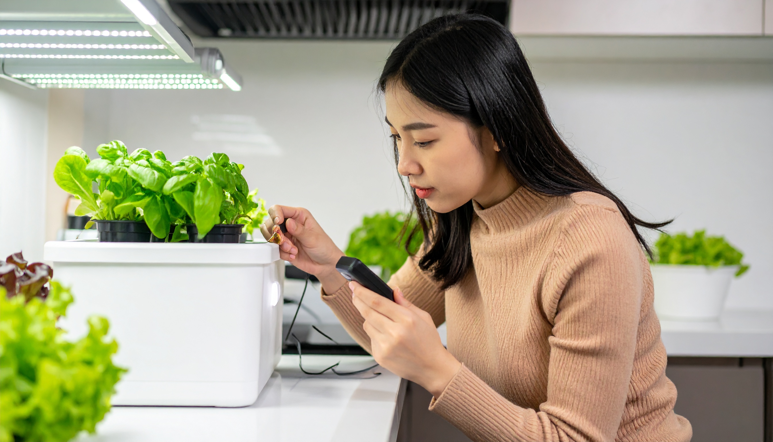 조명과 식물 사이의 거리는 30~50cm로 유지해 화상을 방지하세요.