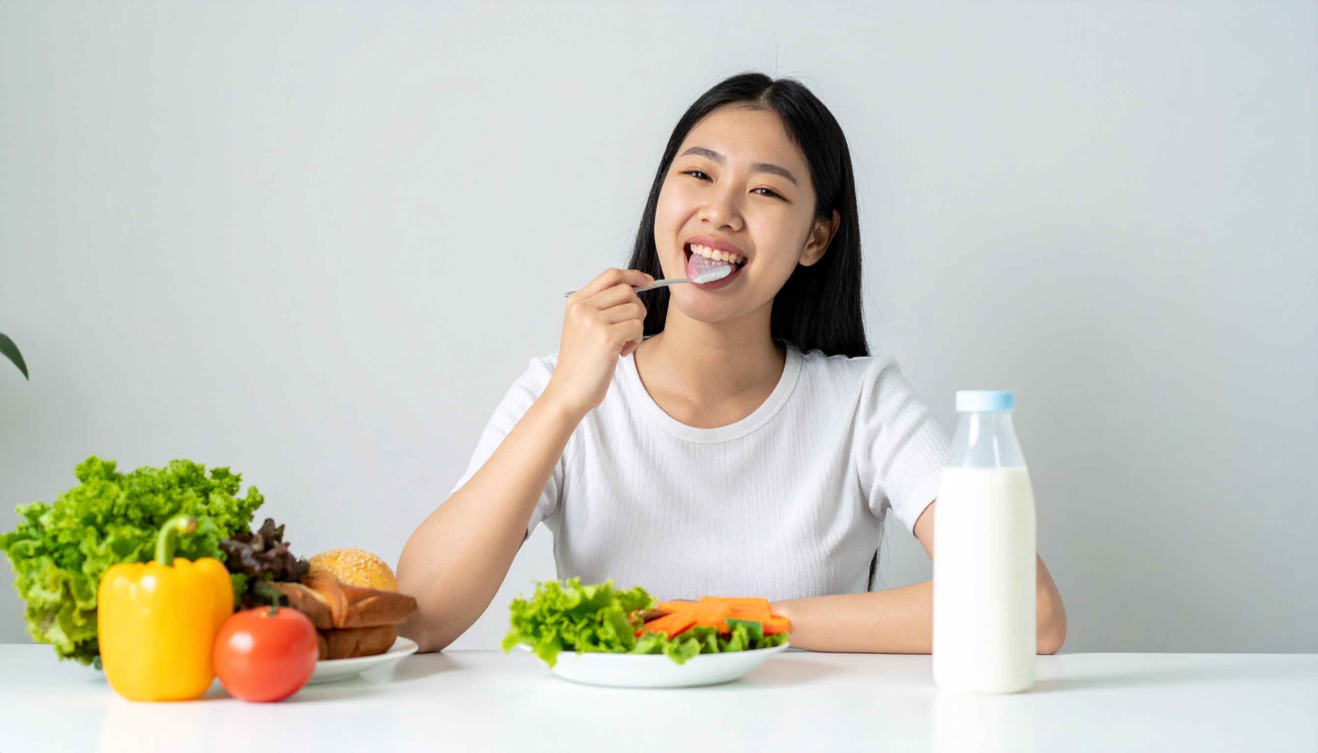 칼슘, 비타민 D가 풍부한 식단(우유, 브로콜리)은 치아를 강화한다.