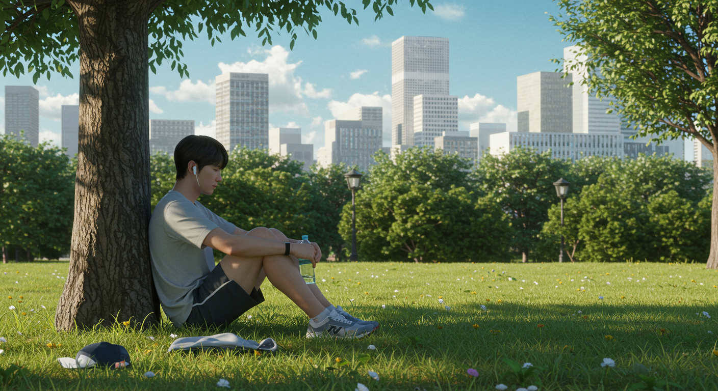 - 본 운동: 20~30분 중강도 걷기 또는 슬로우조깅(심박수 50~70% 유지).