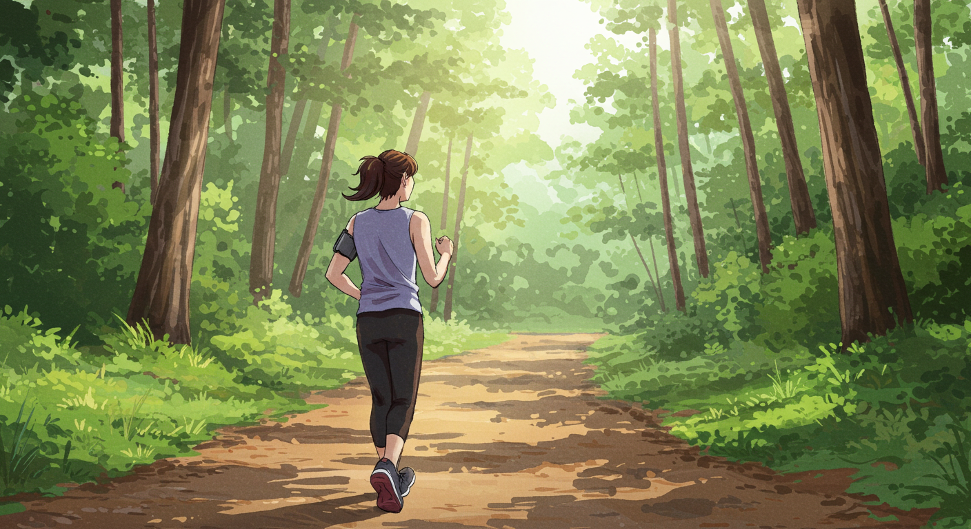 - 본 운동: 20~30분 중강도 걷기 또는 슬로우조깅(심박수 50~70% 유지).