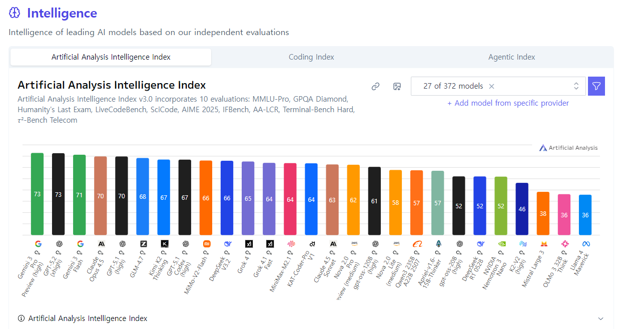 이 글에서는 2025년 12월 31일 현재, 전 세계 개발자와 유저들이 가장 신뢰하는 벤치마크를 기반으로 대장급 LLM들의 순위와 핵심 특징을 체계적으로 정리했습니다. 내 업무와 프로젝트에 딱 맞는 AI가 무엇인지 지금 확인해보세요!
