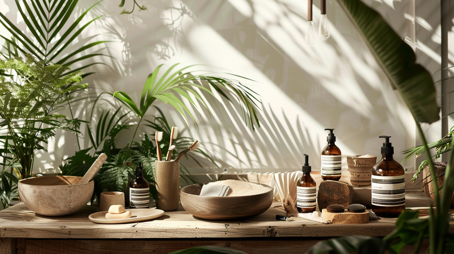 제품 예시: 생분해성 주방 용품, 재사용 가능한 스트로우, 친환경 세제