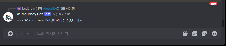올려놓고 엔터를 치니 미드저니가 생각중이라네요~