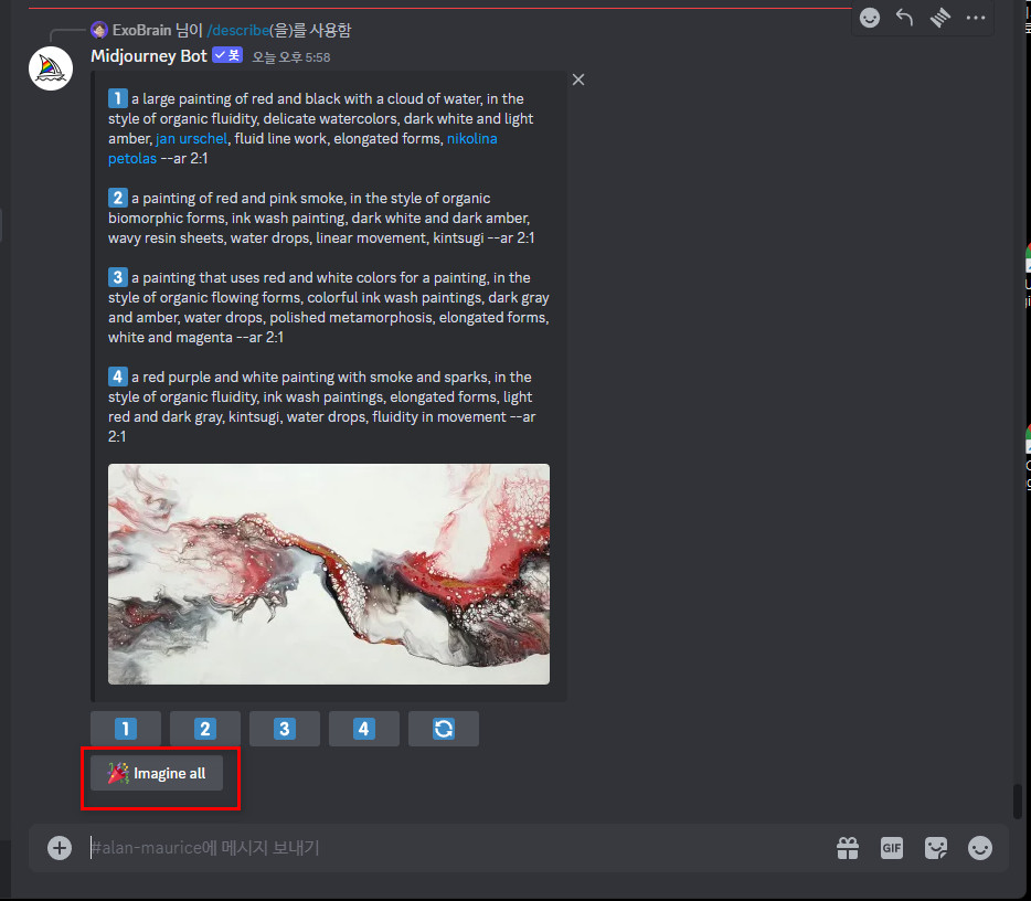 해석한 글이 비슷해서 저는 빨간 네모 표시인 [imagine all]을 선택해서 4개 전부 만들어 달라고 버튼을 클릭합니다.