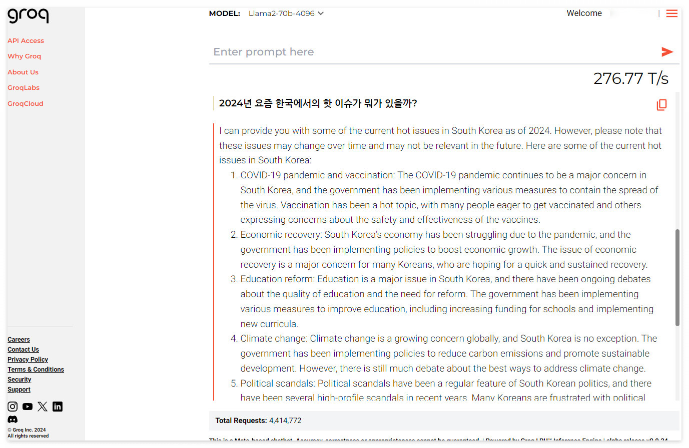 아시는지 모르겠지만 groq는 최고의 속도를 자랑합니다.