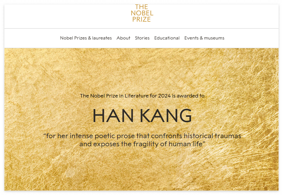 2024년, 한강 작가는 노벨문학상을 수상하며 대한민국의 두 번째 노벨상 수상자가 되었습니다. 그녀의 작품이 선정된 결정적인 이유는 "역사적 상처를 직면하고, 인간의 삶의 연약함을 드러내는 강렬한 시적 산문"이라는 평가를 받았기 때문입니다. 한강의 작품은 인간 존재의 본질과 고통, 상처를 철저히 탐구하며, 그녀만의 독창적인 문체로 세계 독자들에게 깊은 인상을 남겼습니다.