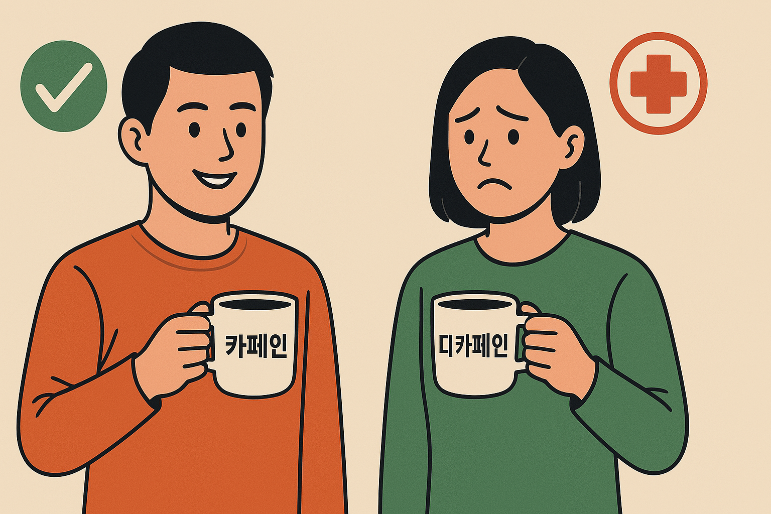 디카페인은 카페인 함량이 적어 부작용이 덜하지만, 효능도 일부 유지됩니다.